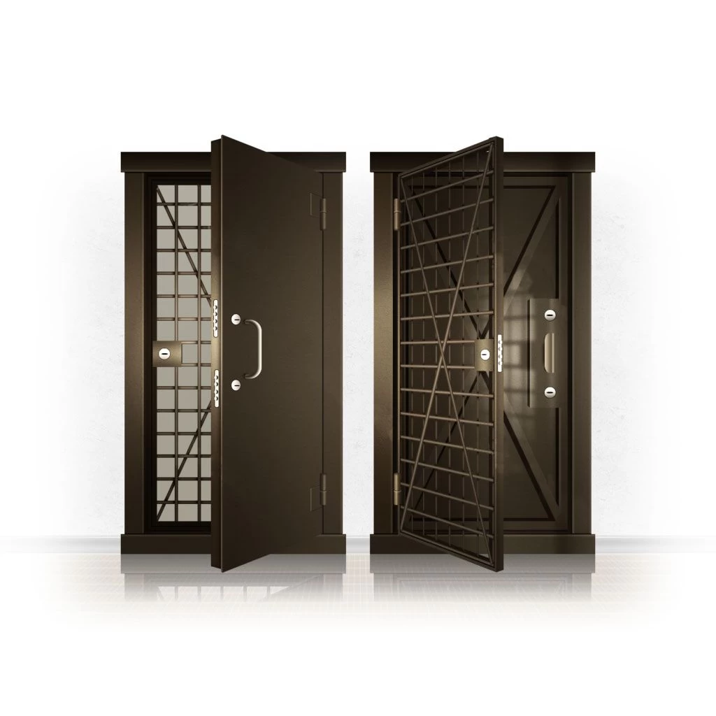 Металлические двери КХО и КХН представляют собой входные блоки, обладающие высоким уровнем взломостойкости и состоят из трех основных элементов: усиленного каркаса, сплошного металлического полотна и решетчатой двери. Дверной блок изготавливается из стального уголка 100*100 мм. Места крепления блока к стене цементируются и закрываются стальными наличниками шириной 40 мм. Крепеж заходит вглубь стены на 80 мм. В конструкции внешней створки монтируются ребра жесткости, для обшивки используется сталь толщиной не менее 3 мм. Внутренняя решетка изготавливается из прутка диаметром 16 мм. Размер ячеек решетки должен составлять не более 15 на 15 см. В точках пересечения прутья надежно приваривают друг к другу. В КХО и КХН необходимо поддерживать определенную температуру и влажность. Для этого внутреннее пространство глухой двери заполняется теплоизоляционным материалом, а по периметру двери приклеивается уплотнитель. Такие двери оборудуются замками с повышенным уровнем взломостойкости. Специализированные двери КХО и КХН в Лузе могут быть оснащены сигнализацией, в конструкции могут быть проушины для навесного замка и элементами для опечатывания. Если идет речь о двери в комнату хранения оружия, в створке оборудуется окно для выдачи оружия и спец. средств, которое накрывается стальной дверцей.
