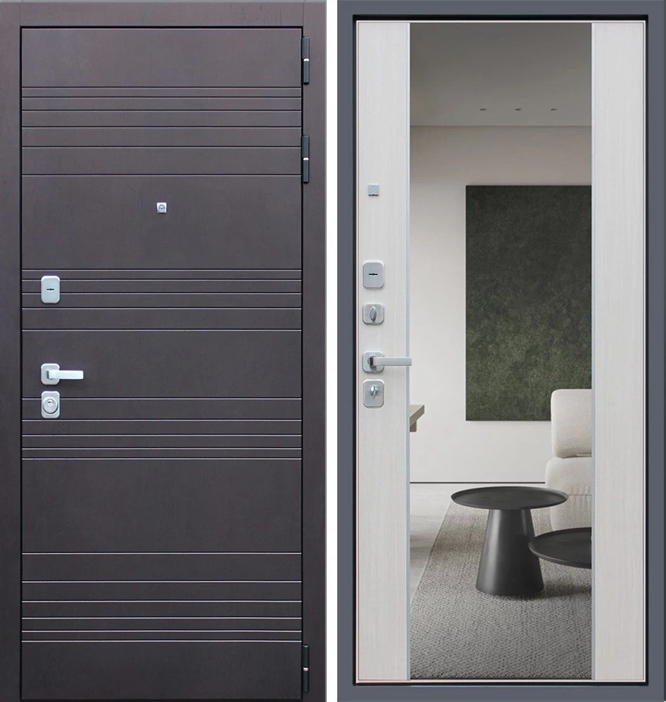 Надежная входная Дверь Дуэт с зеркалом премиум класса по цене 47 380 руб. Большая толщина стали защитит от проникновения в ваш дом, квартиру или коттедж. Используется очень качественная фурнитура: замки, цилиндры, ручки, защелки. Покрытие и отделка двери изготовлено под внимательным контролем производителя. Дверь имеет долгий срок службы и гарантию.