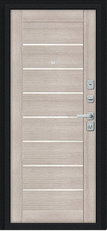 Надежная входная Дверь Браво Техно/BChrome Букле черное/Cappuccino Melinga премиум класса по цене 35 130 руб. Большая толщина стали защитит от проникновения в ваш дом, квартиру или коттедж. Используется очень качественная фурнитура: замки, цилиндры, ручки, защелки. Покрытие и отделка двери изготовлено под внимательным контролем производителя. Дверь имеет долгий срок службы и гарантию.
